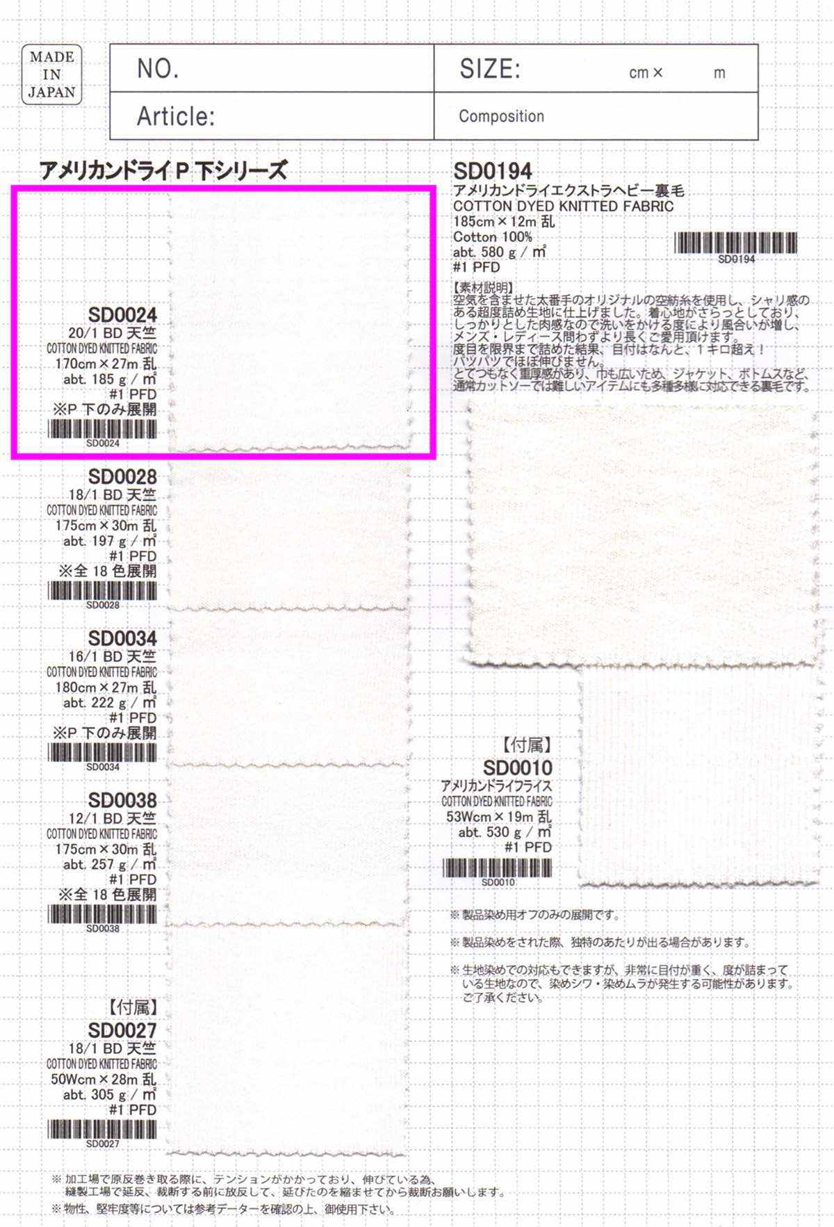 アメリカンドライP下シリーズ 20/1 BD 天竺