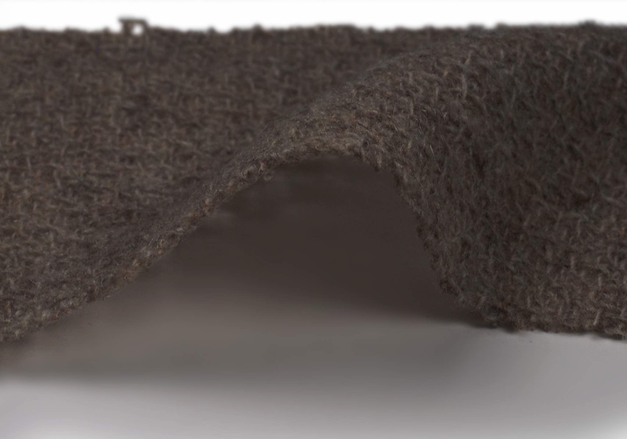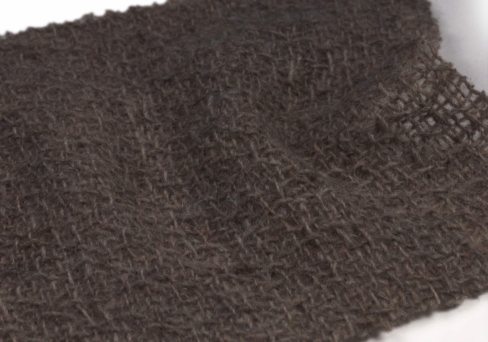 水流縮絨で生地をクリンプフェルトさせると、繊維間に空気がたっぷり含まれボリュームが生まれて、軽くやわらかな立体感のある生地になります。