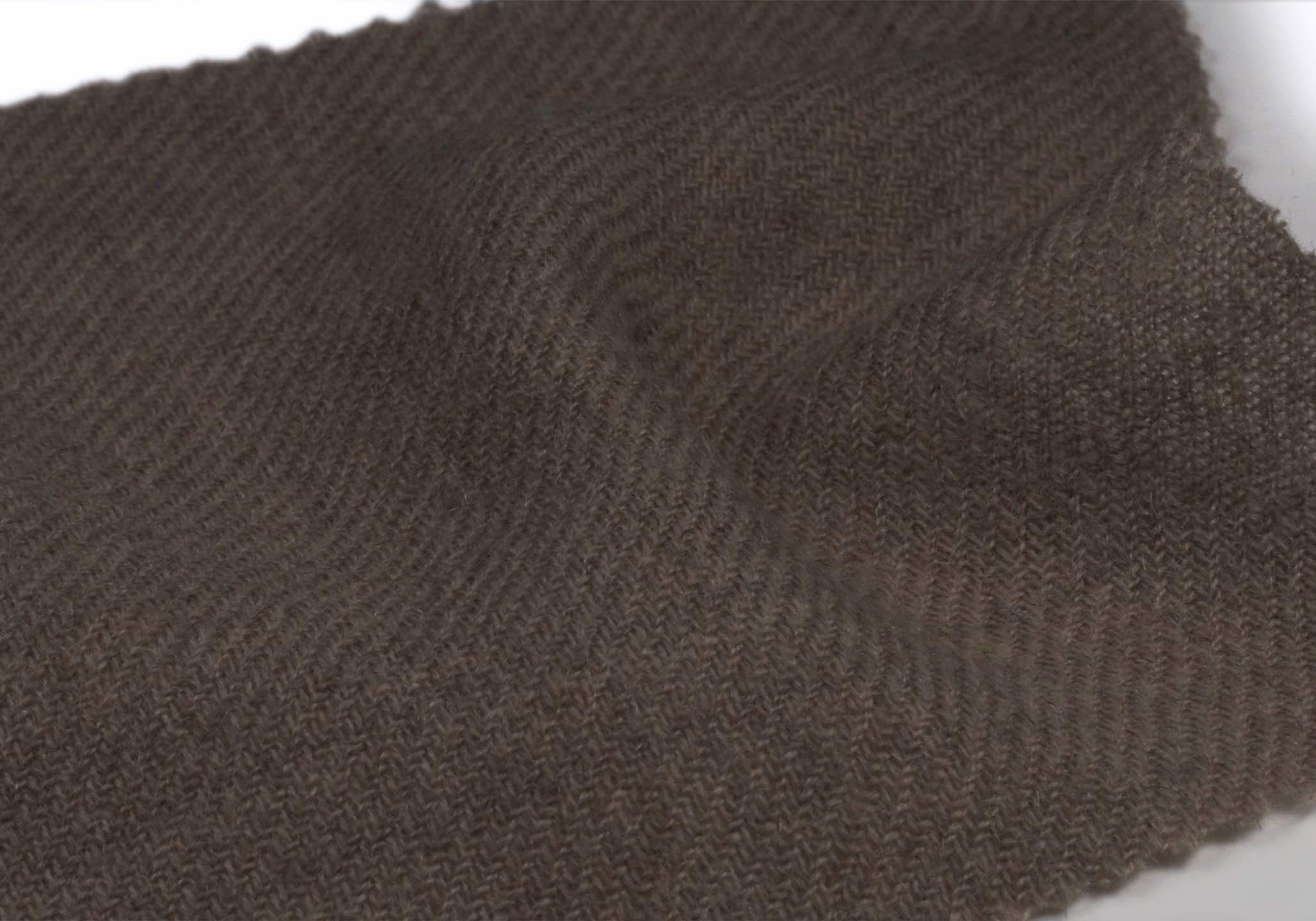 水流縮絨で生地をクリンプフェルトさせると、繊維間に空気がたっぷり含まれボリュームが生まれて、軽くやわらかな立体感のある生地になります。