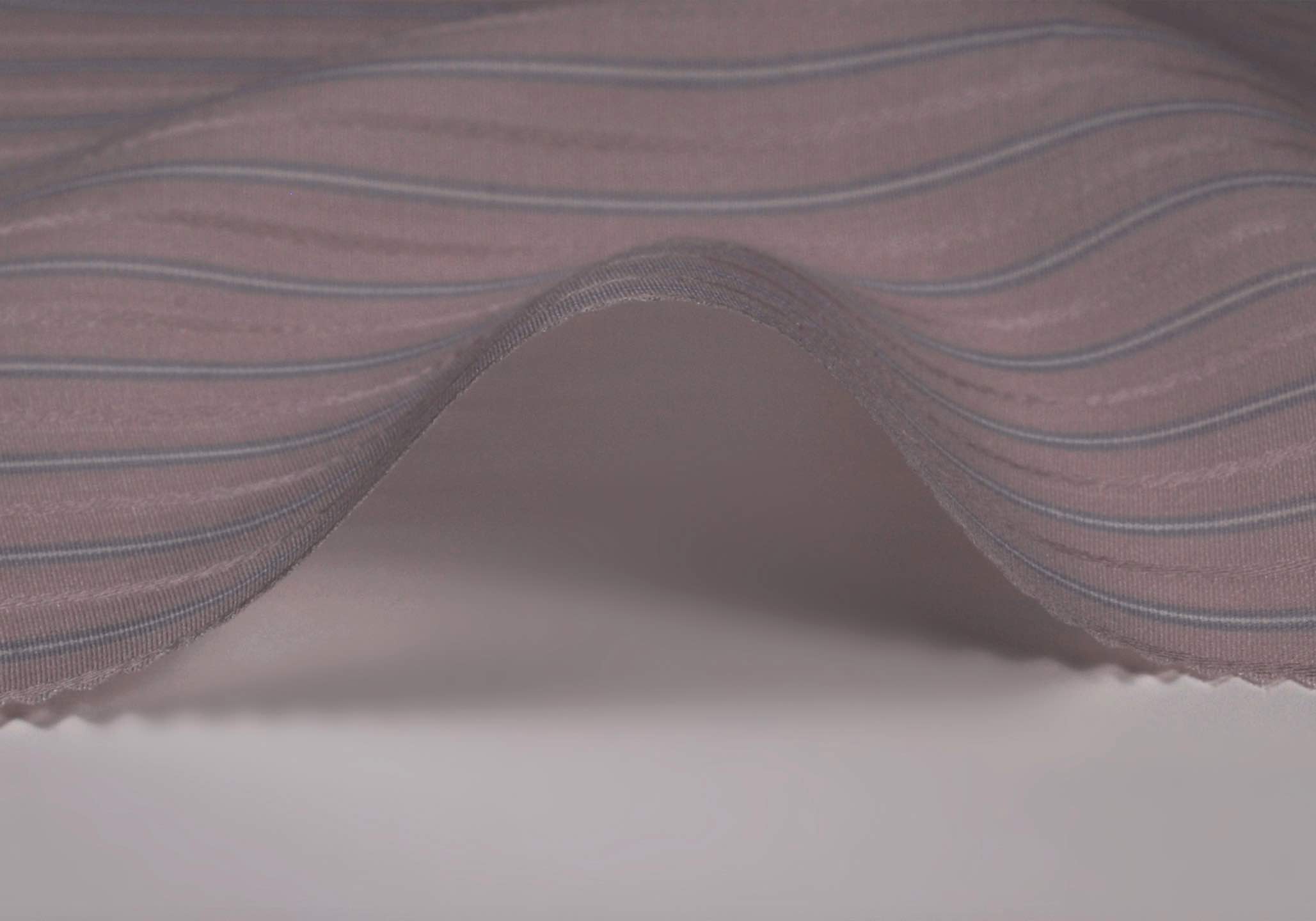 落ち感がありながらも、過度に柔らかすぎない絶妙なタッチを持つストライプ素材です。