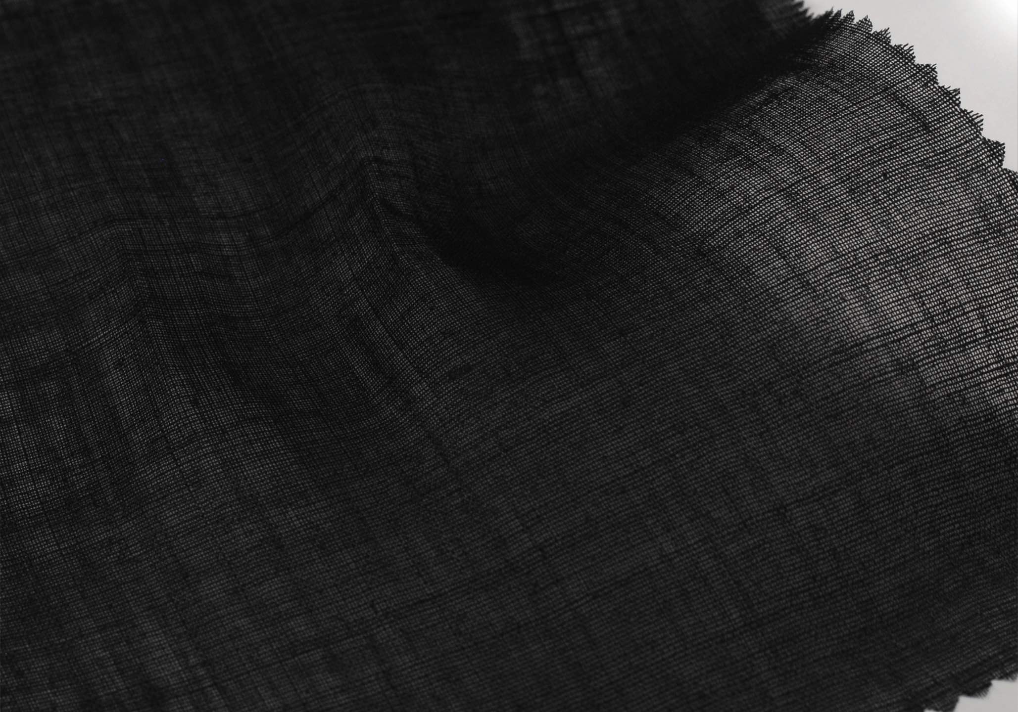 透け感とハリ感のある表情を持ち、シルクオーガンジーのようなドライな風合いに仕上がっております。