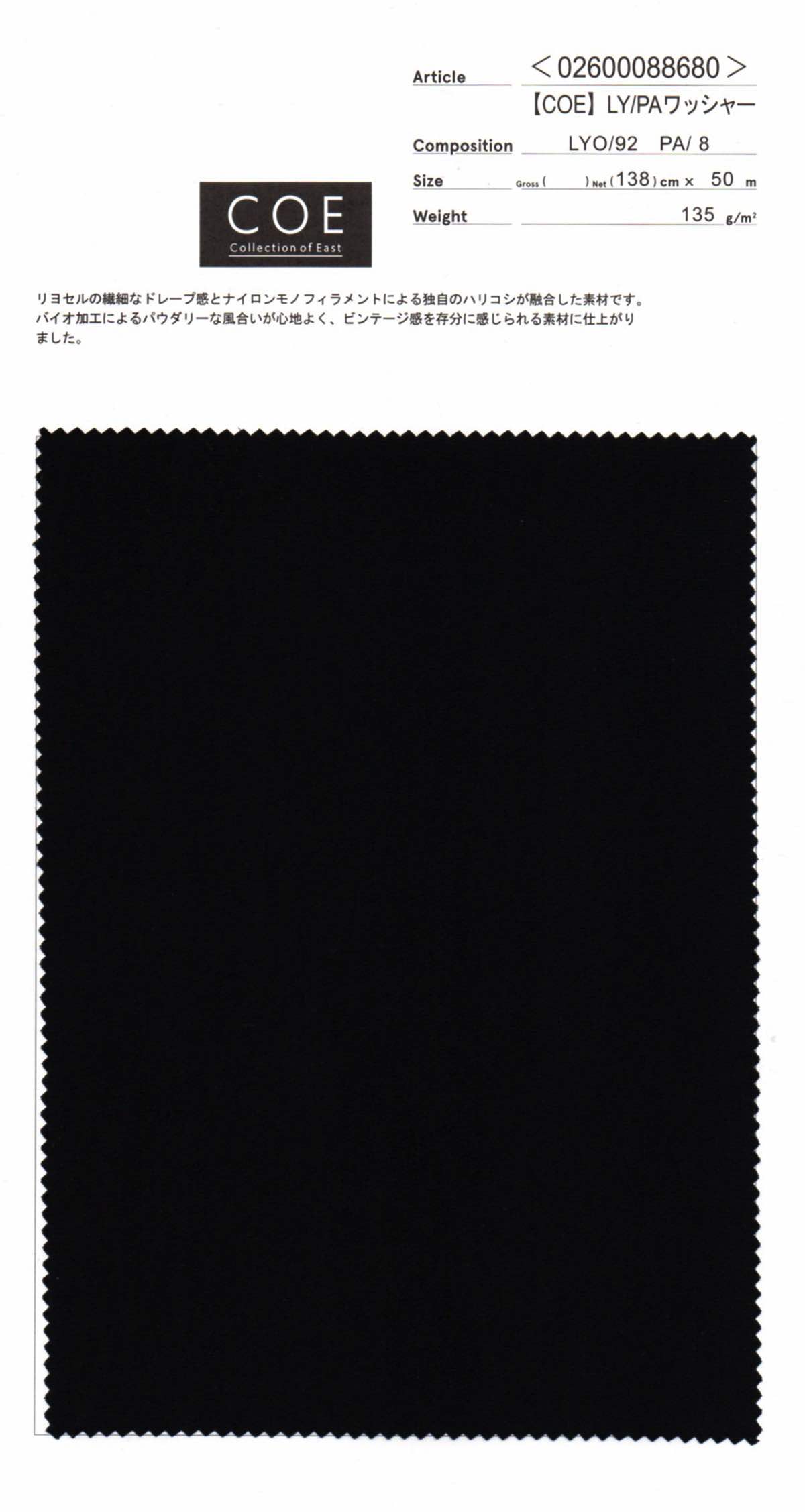 リヨセルの繊細なドレープ感とナイロンモノフィラメントによる独自のハリコシが融合した素材です。
