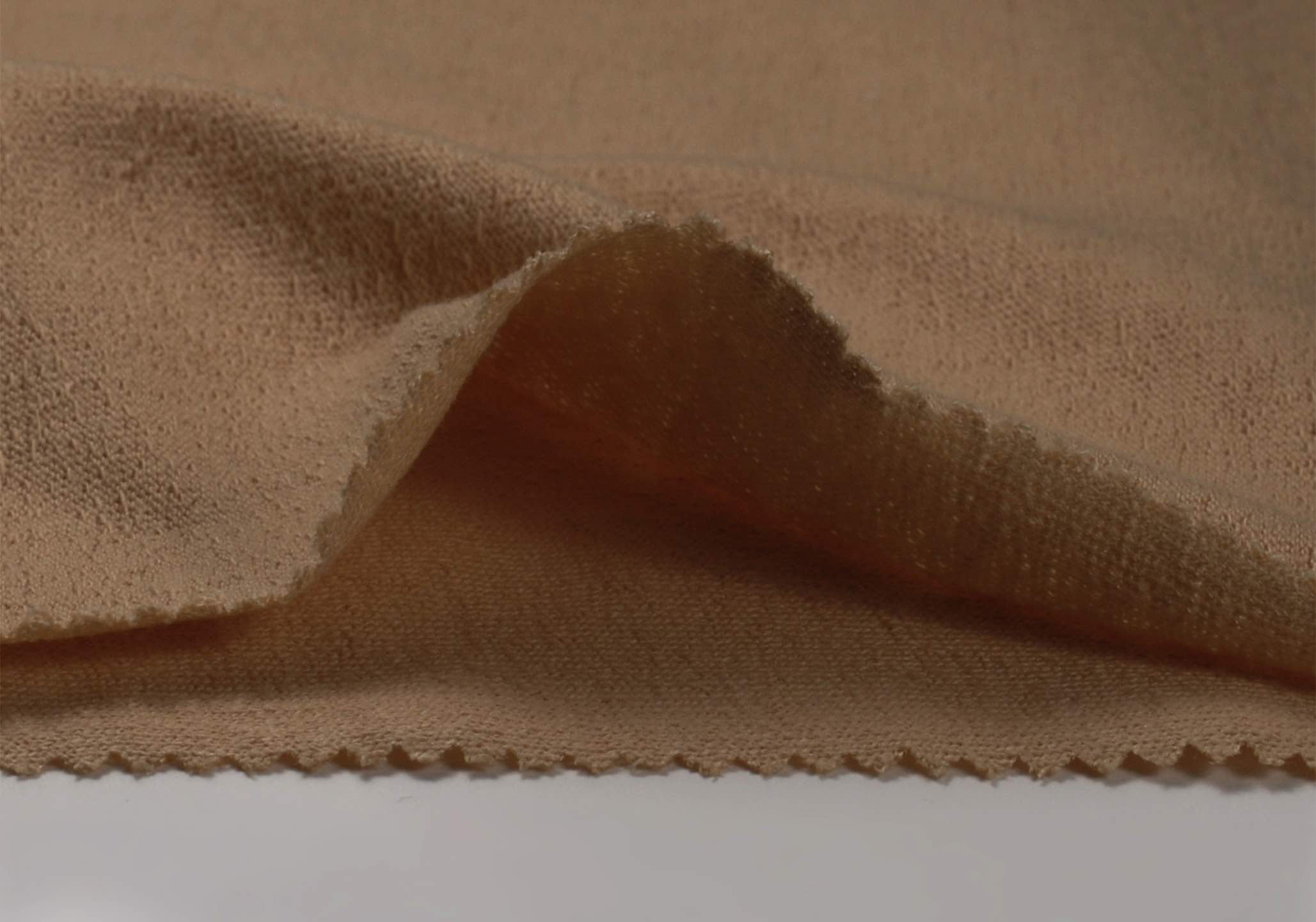 特殊な編み機で編んでいる天竺素材です。表裏に独特の表情があり、あえて裏側を表としております。