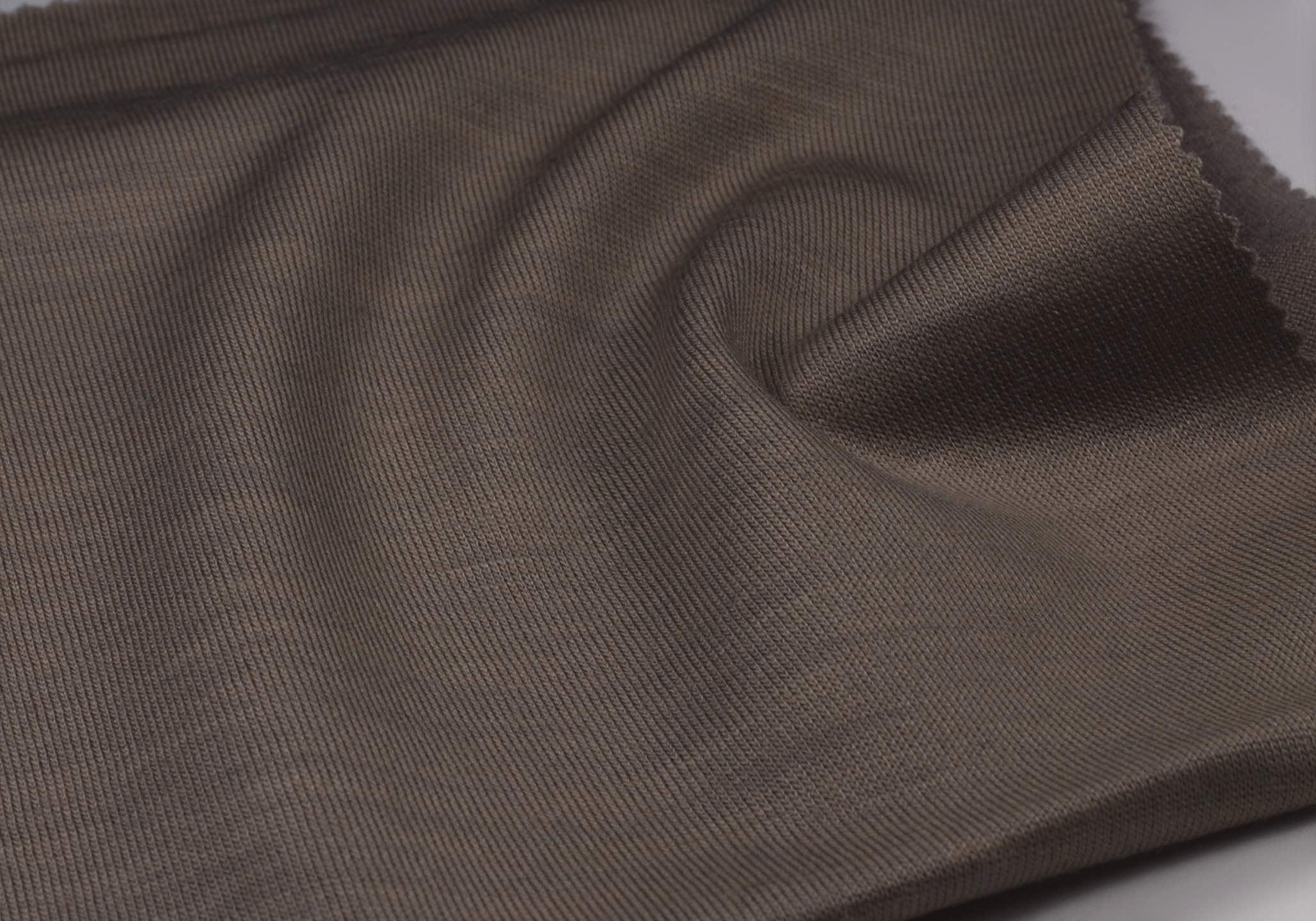 裏面には70Dのナイロン加工糸をプレーティングでいれることで、ソフトにふくらみのある風合いを表現しております。