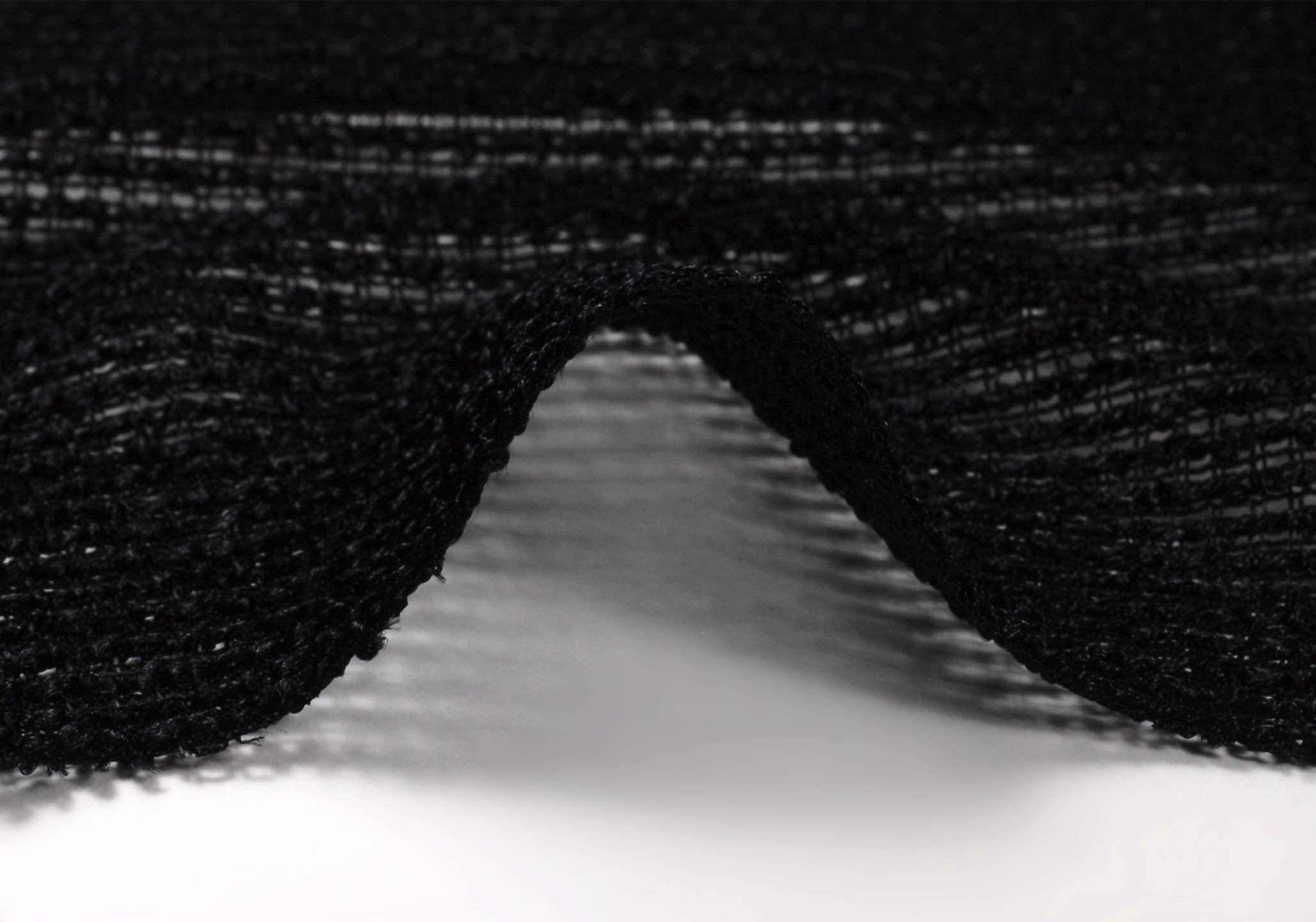 カラミ調の組織で、繊細な透け感と豊かな表情が特徴の素材です。