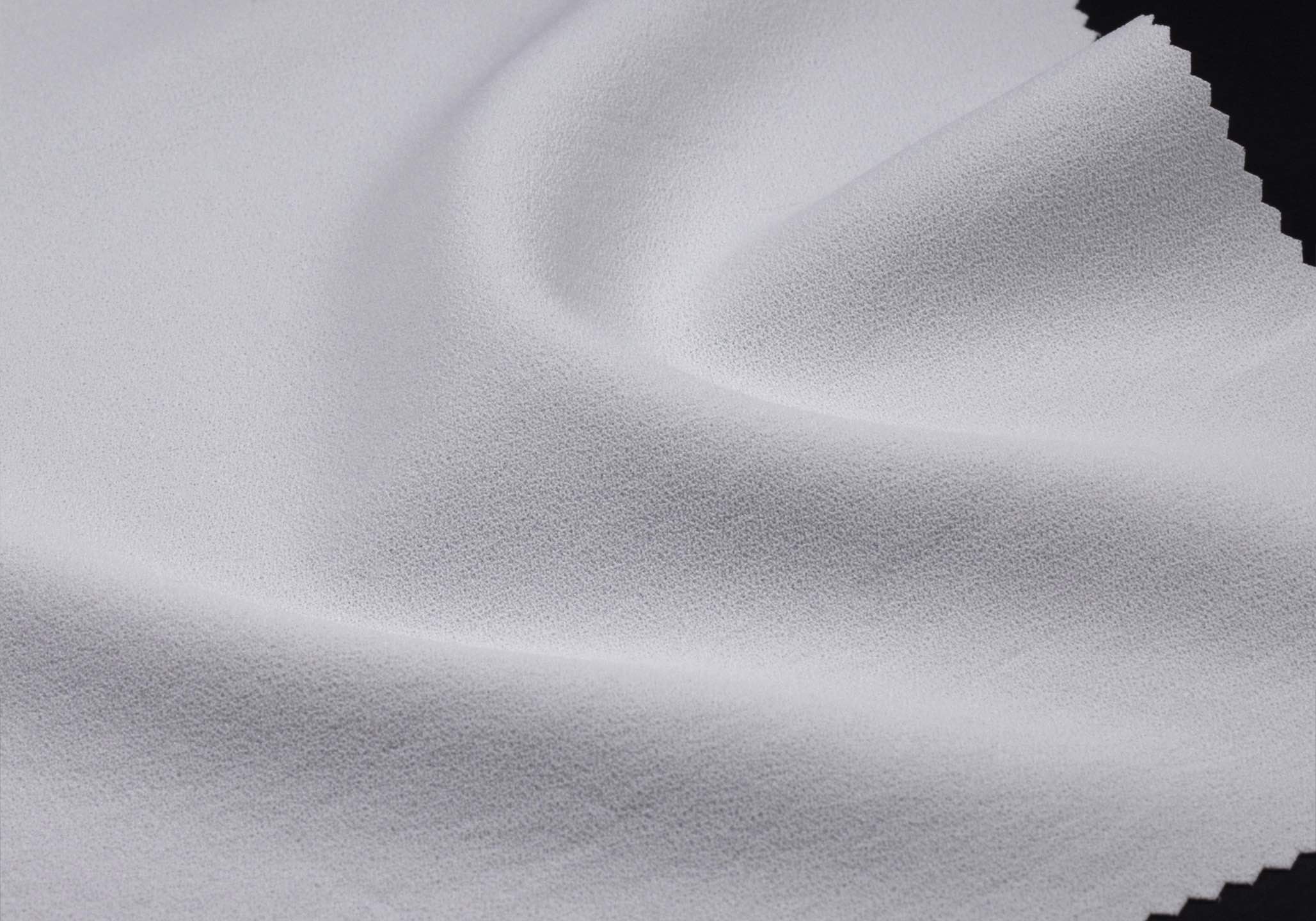 そこで細番手のポリエステルの中でも、防透性が高く、ストレッチ性のある糸を選定し、タテヨコに使用してジョーゼットに織り上げました。