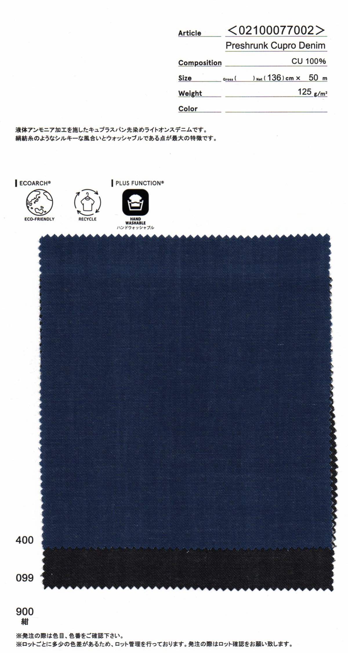 液体アンモニア加工を施したキュプラスパン先染めライトオンスデニムです。