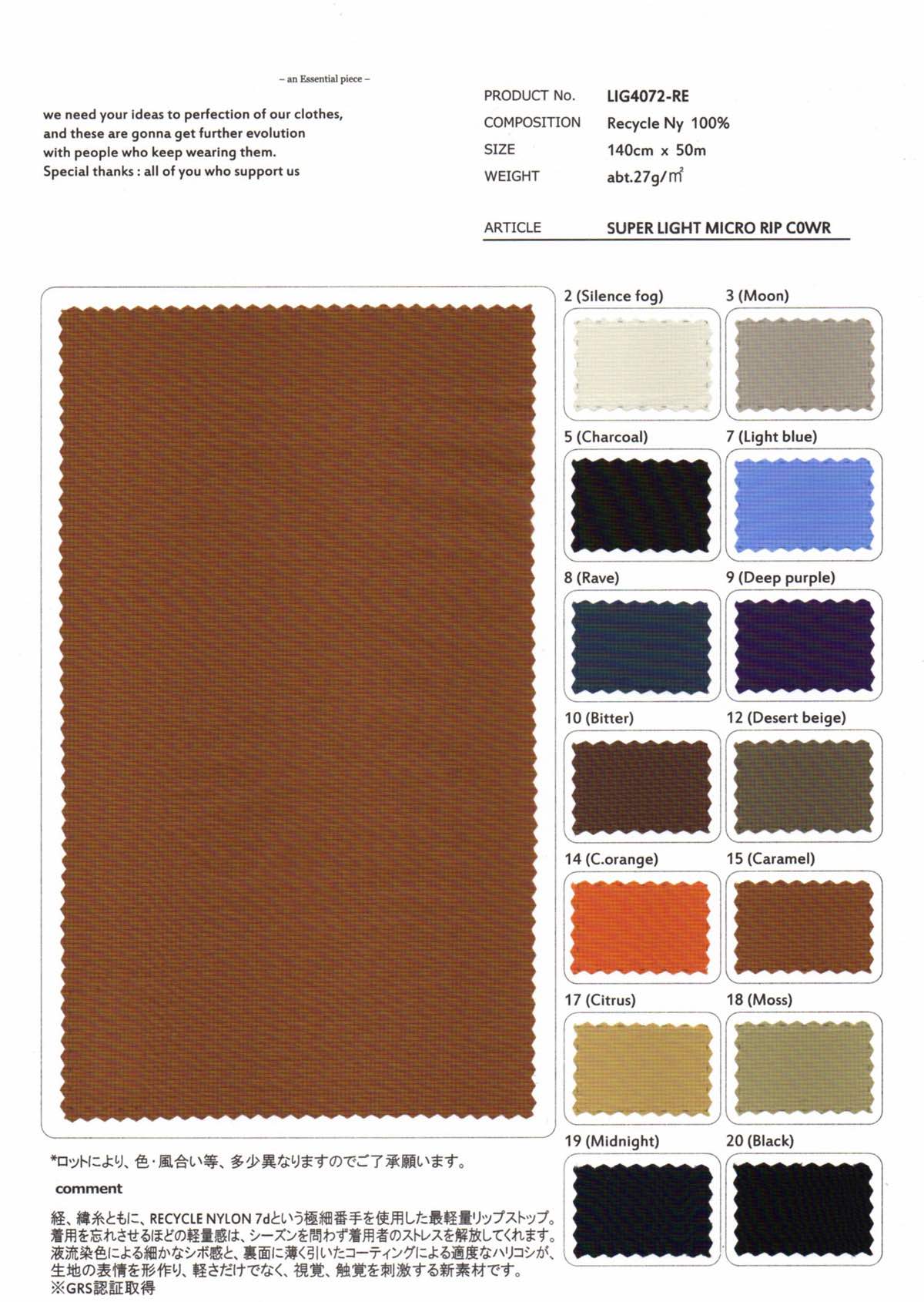 経、緯糸ともに、RECYCLE NYLON 7dという極細番手を使用した最軽量リップストップ。