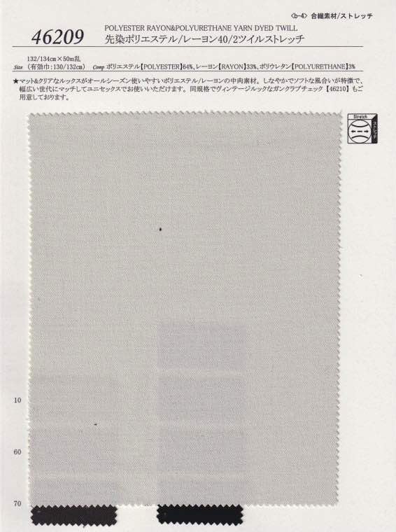 マット&クリアなルックスがオールシーズン使いやすいポリエステル/レーヨンの中肉素材。しなやかでソフトな風合いが特徴で、幅広い世代にマッチしてユニセックスでお使いいただけます。同規格でヴィンテージルックなガンクラブチェック【46210】もご用意しております。