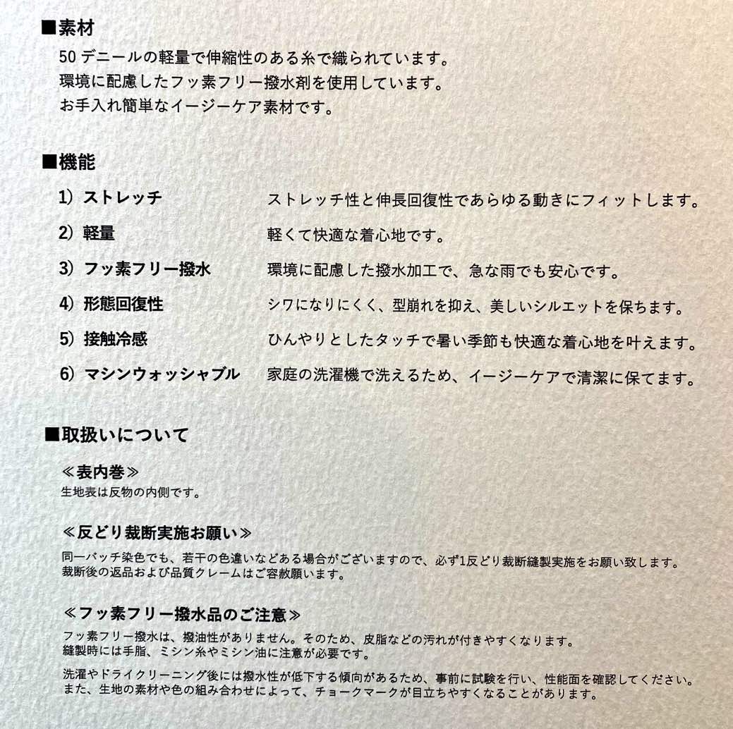 アウター向き トップス向き アウトドア向き スポーツ向き 撥水加工 W巾