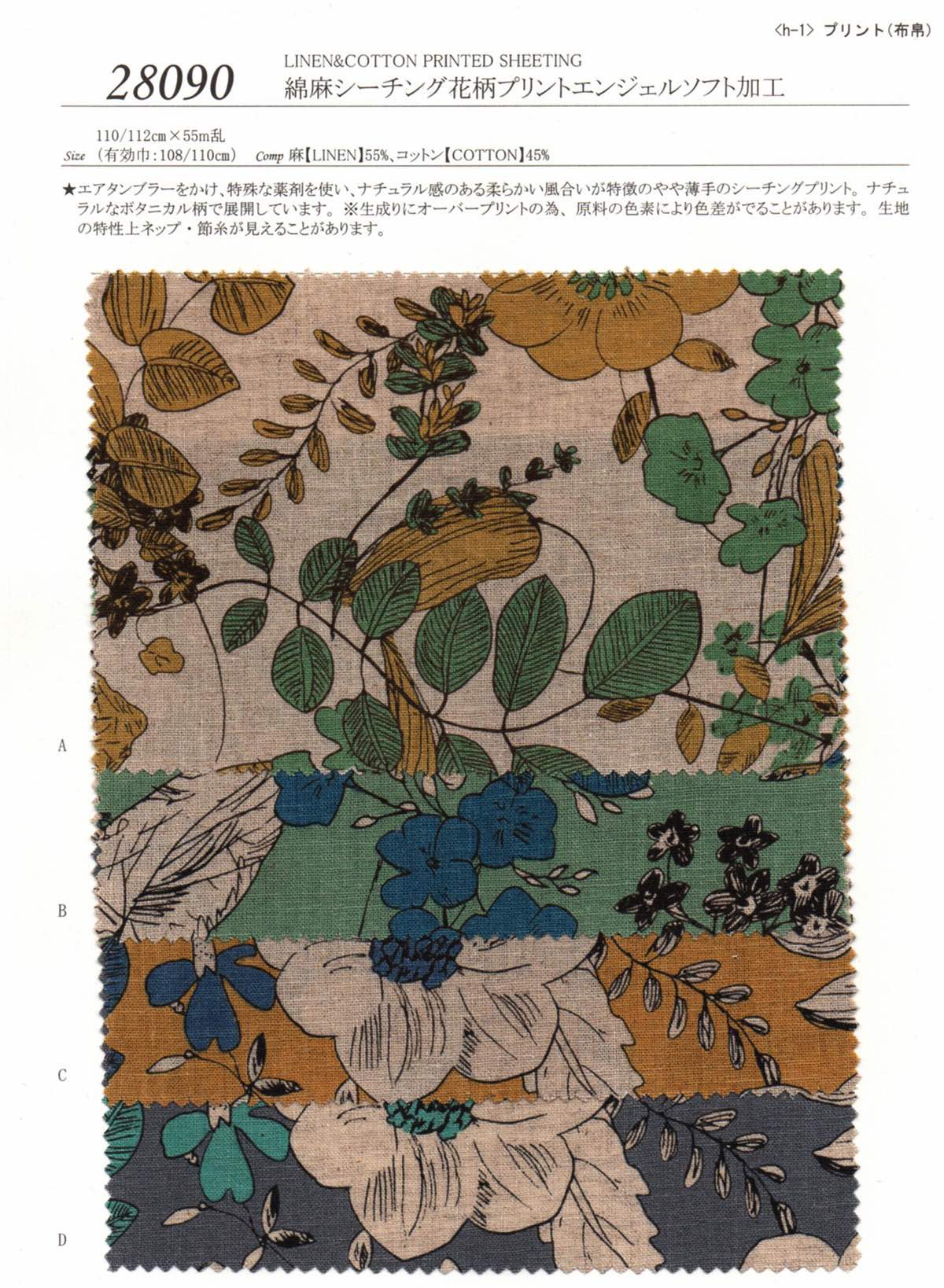 綿麻シーチング花柄プリントエンジェルソフト加工