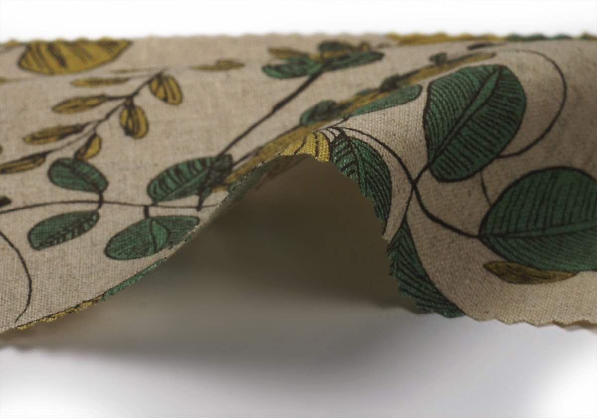 エアタンブラーをかけ、特殊な薬剤を使い、ナチュラル感のある柔らかい風合いが特徴のやや薄手のシーチングプリント。ナチュラルなボタニカル柄で展開しています。※生成りにオーバープリントの為、原料の色素により色差がでることがあります。生地の特性上ネップ・節糸が見えることがあります。