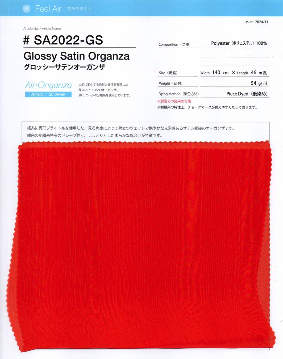 経糸に異形ブライト糸を使用した、見る角度によって際立つウェットで艶やかな光沢感あるサテン組織のオーガンザです。