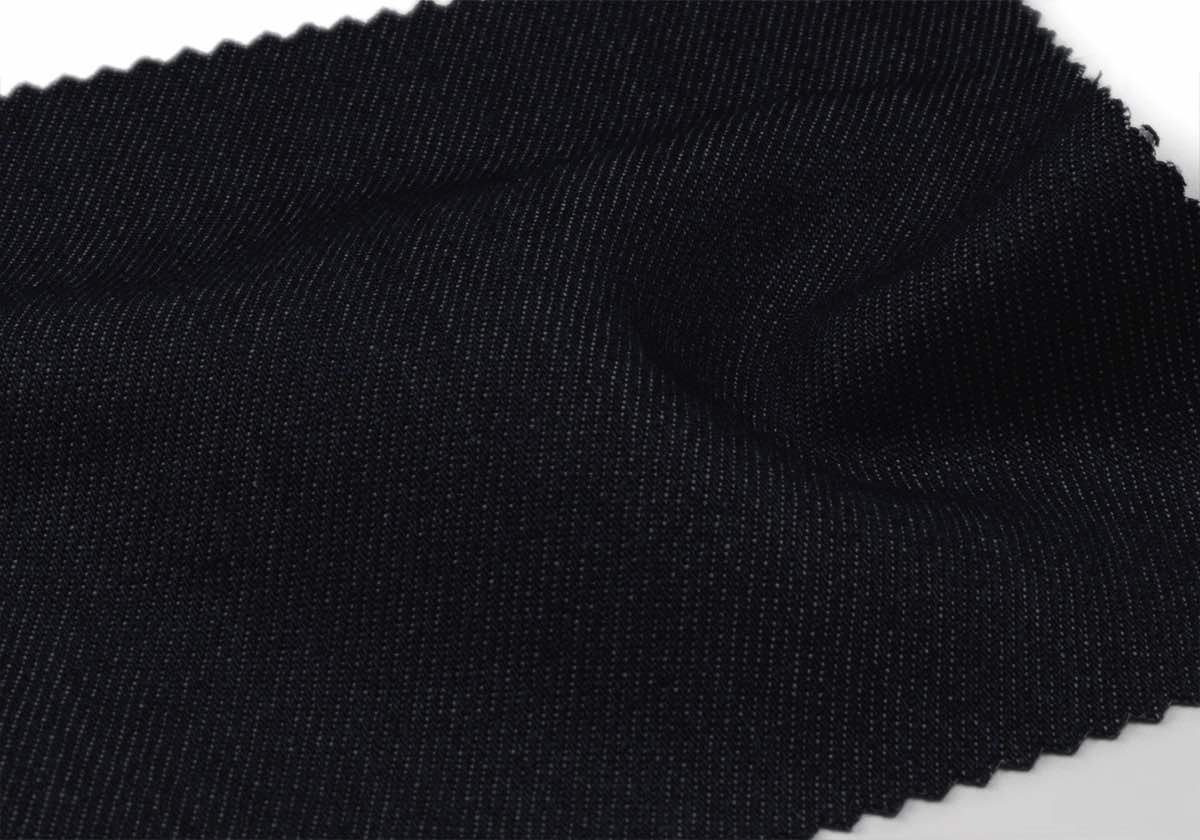 リサイクルポリエステルの原着原料を使用し、MVSで特殊な紡績をすることでリアルなデニム調に仕上げたオリジナル糸を使用した素材。