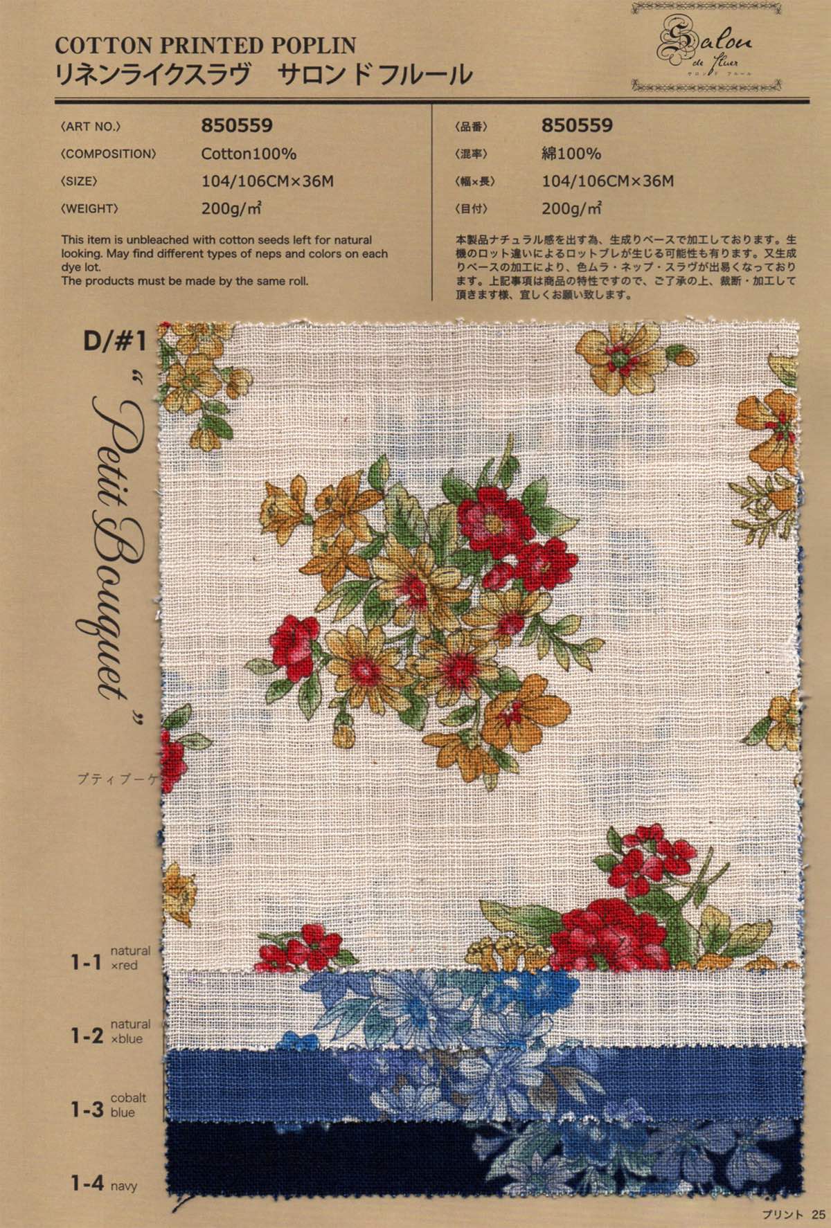 リネンライクスラブクロス サロンドフルール プティブーケ