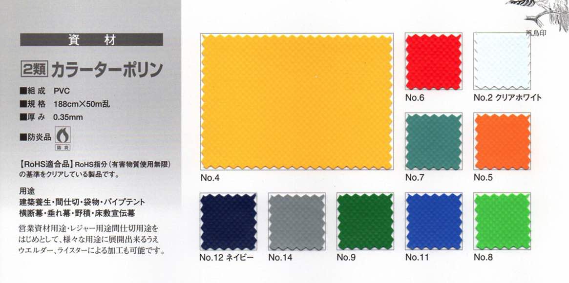 2類 カラーターポリン 0.35mm厚【カットオーダーの場合、取寄手数料¥2200必要】