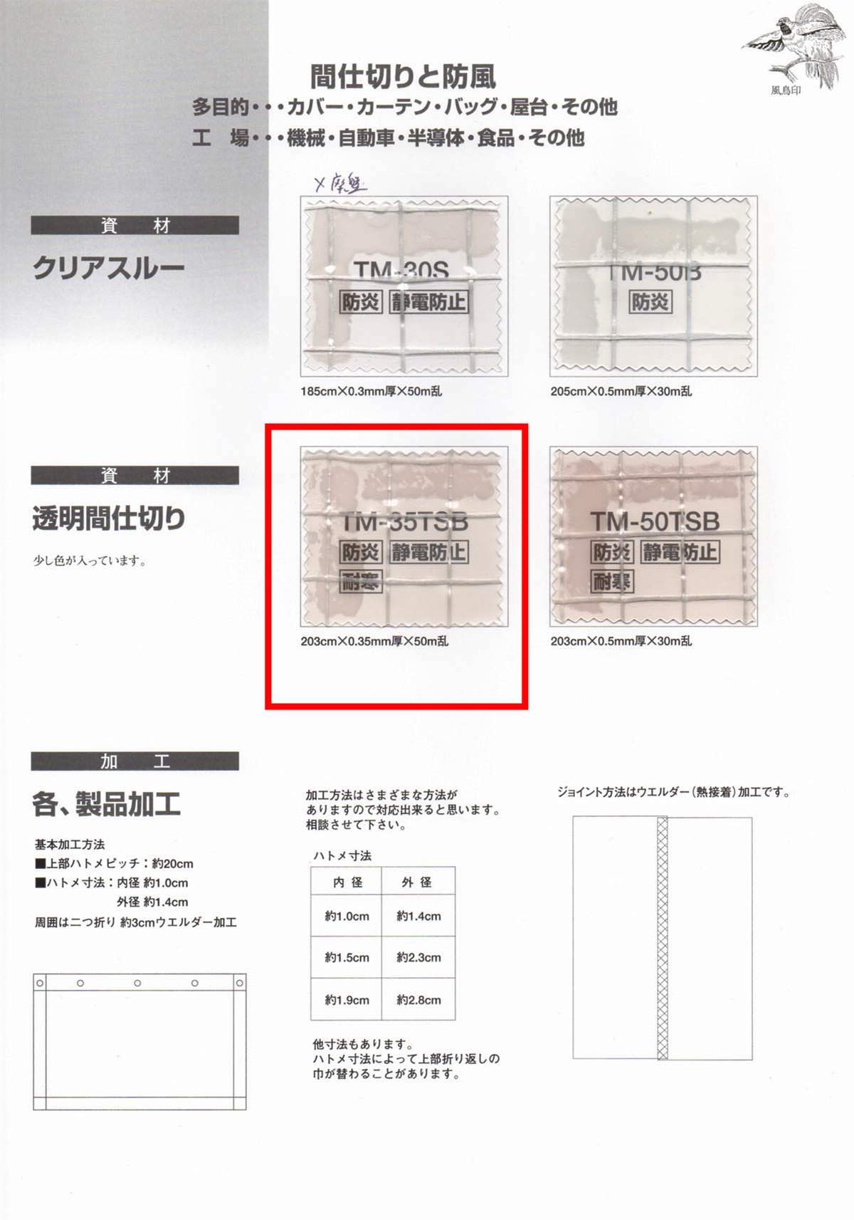 透明間仕切り 0.35㎜厚【カットオーダーの場合、取寄手数料¥2200必要】