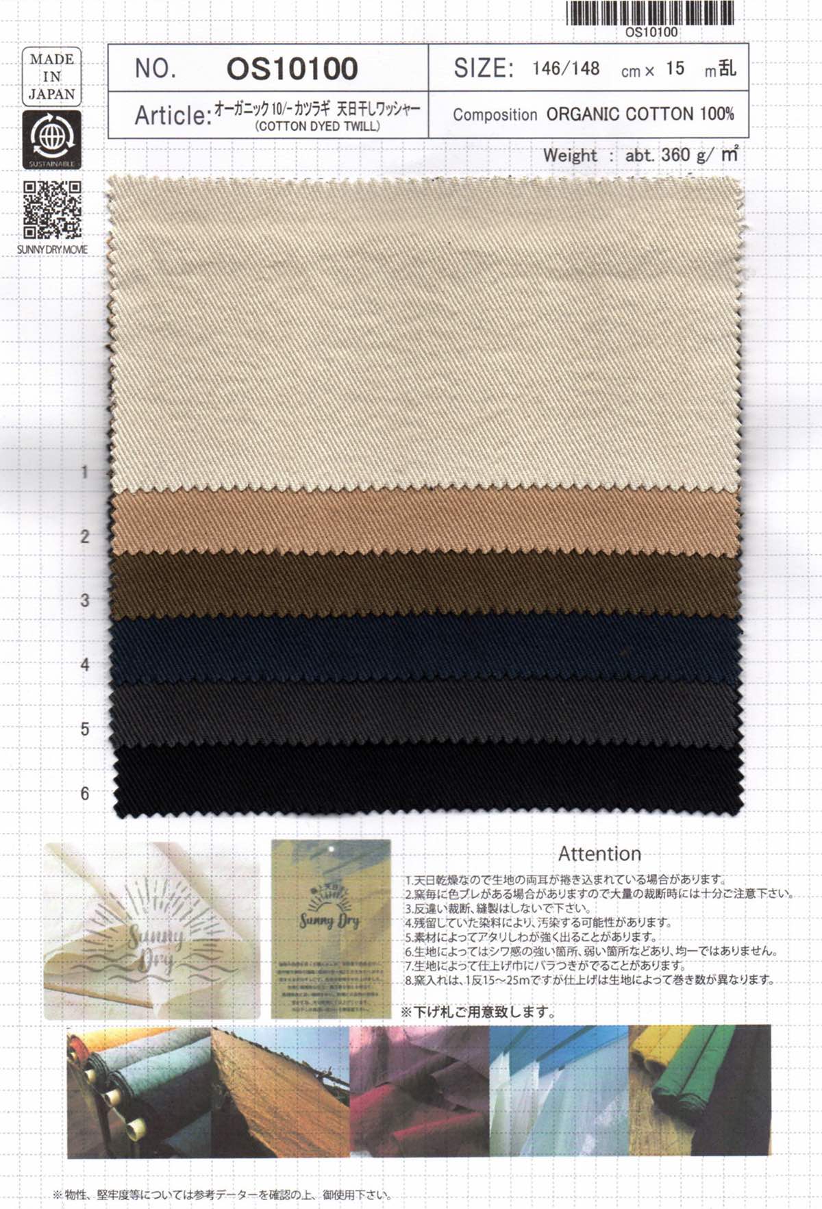 Attention 1.天日乾燥なので生地の両耳が捲き込まれている場合があります。