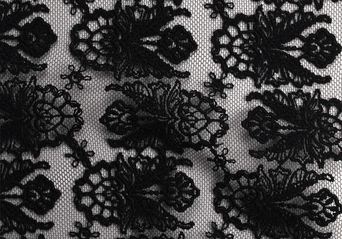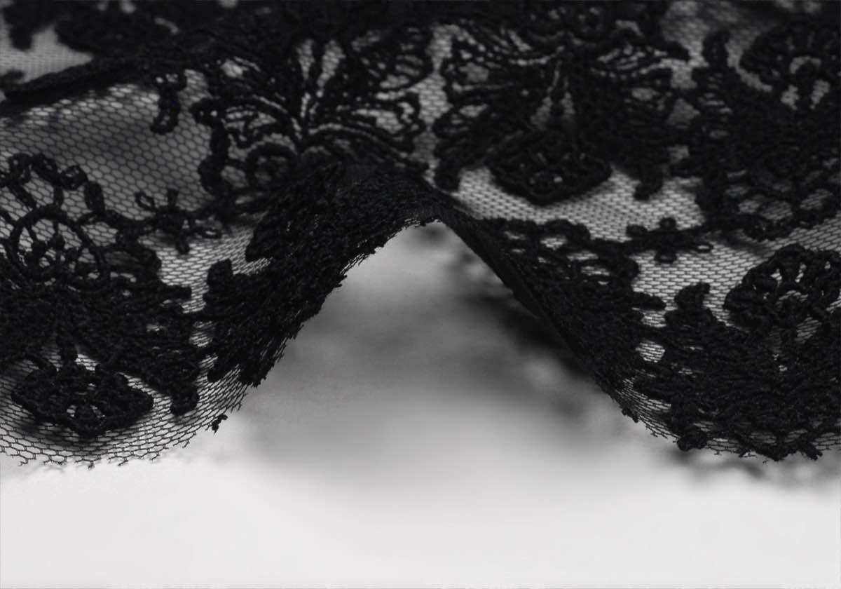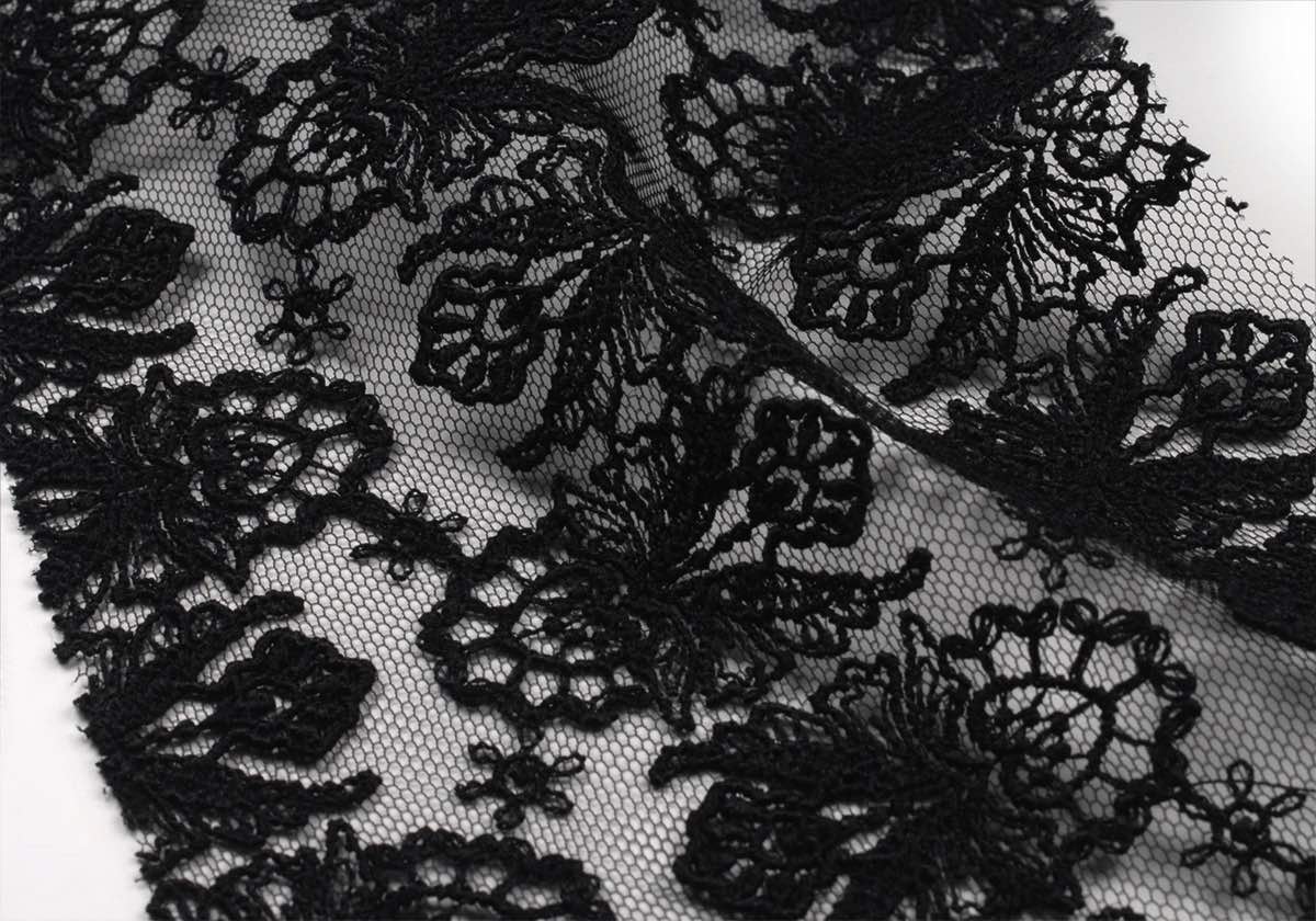 細かい刺繍柄が特徴の中国製レース素材。