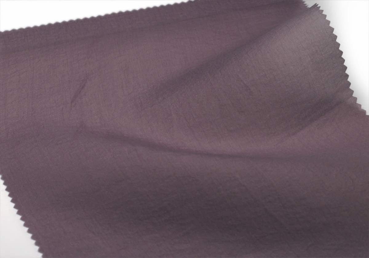 経糸に超細番のポリエステルを使用することで、緯糸のキュプラの美しさが引き立つ繊細な素材が出来上がりました。