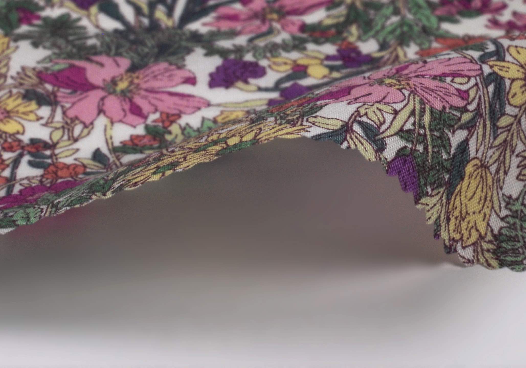 ★キメが細かく、透け感が程よく抑えられたルックスと、ソフトな風合いが特徴の薄手のローンプリント。