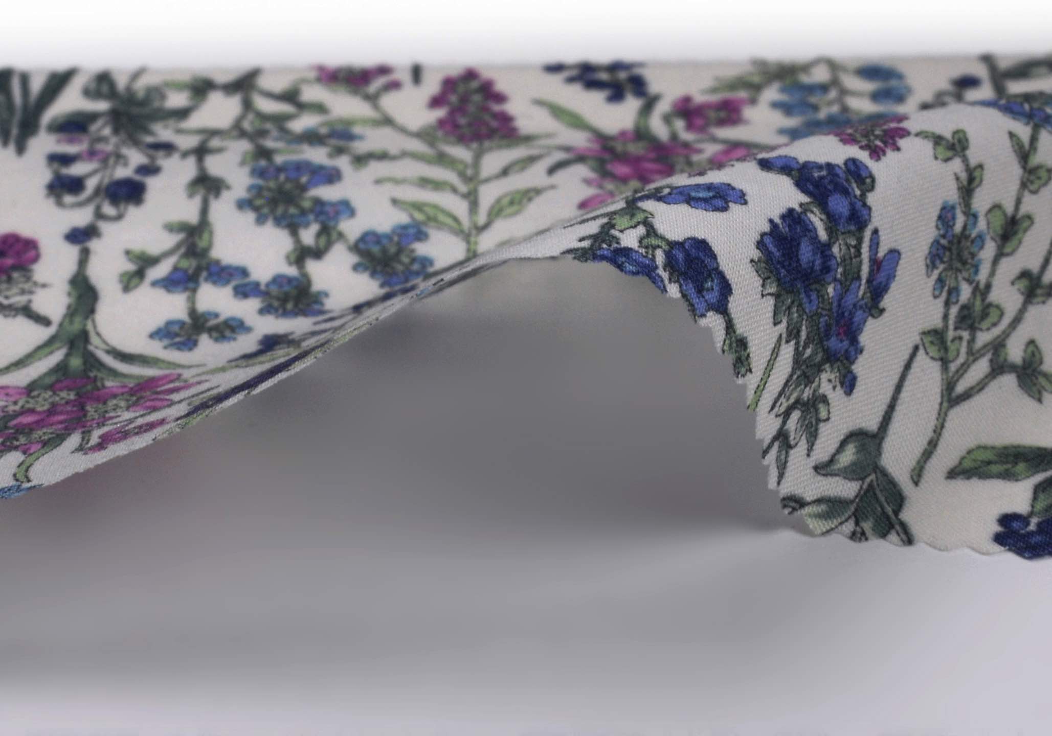 ★キメが細かく、透け感が程よく抑えられたルックスと、ソフトな風合いが特徴の薄手のローンプリント。
