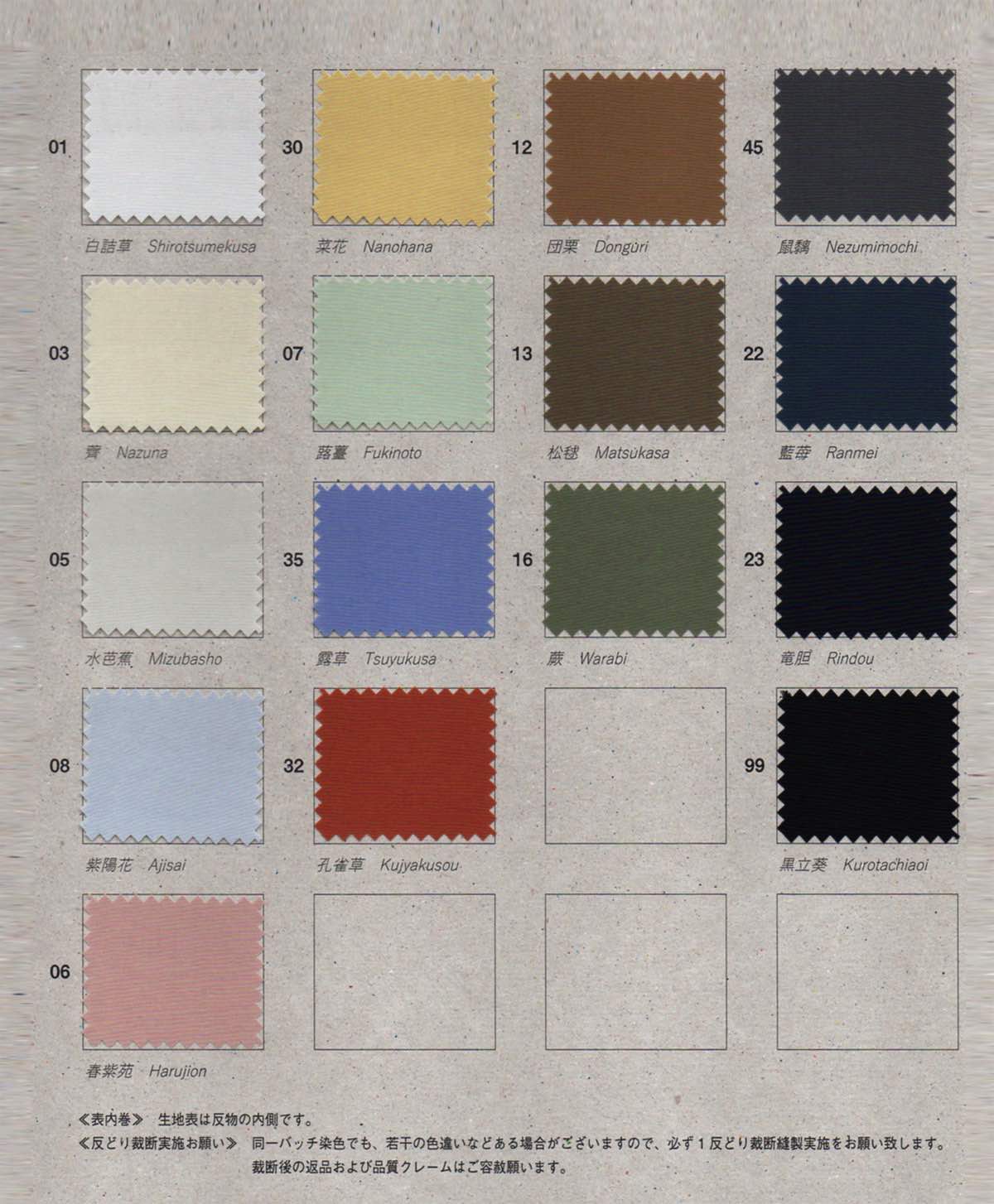 裁断後の返品および品質クレームはご容赦願います。