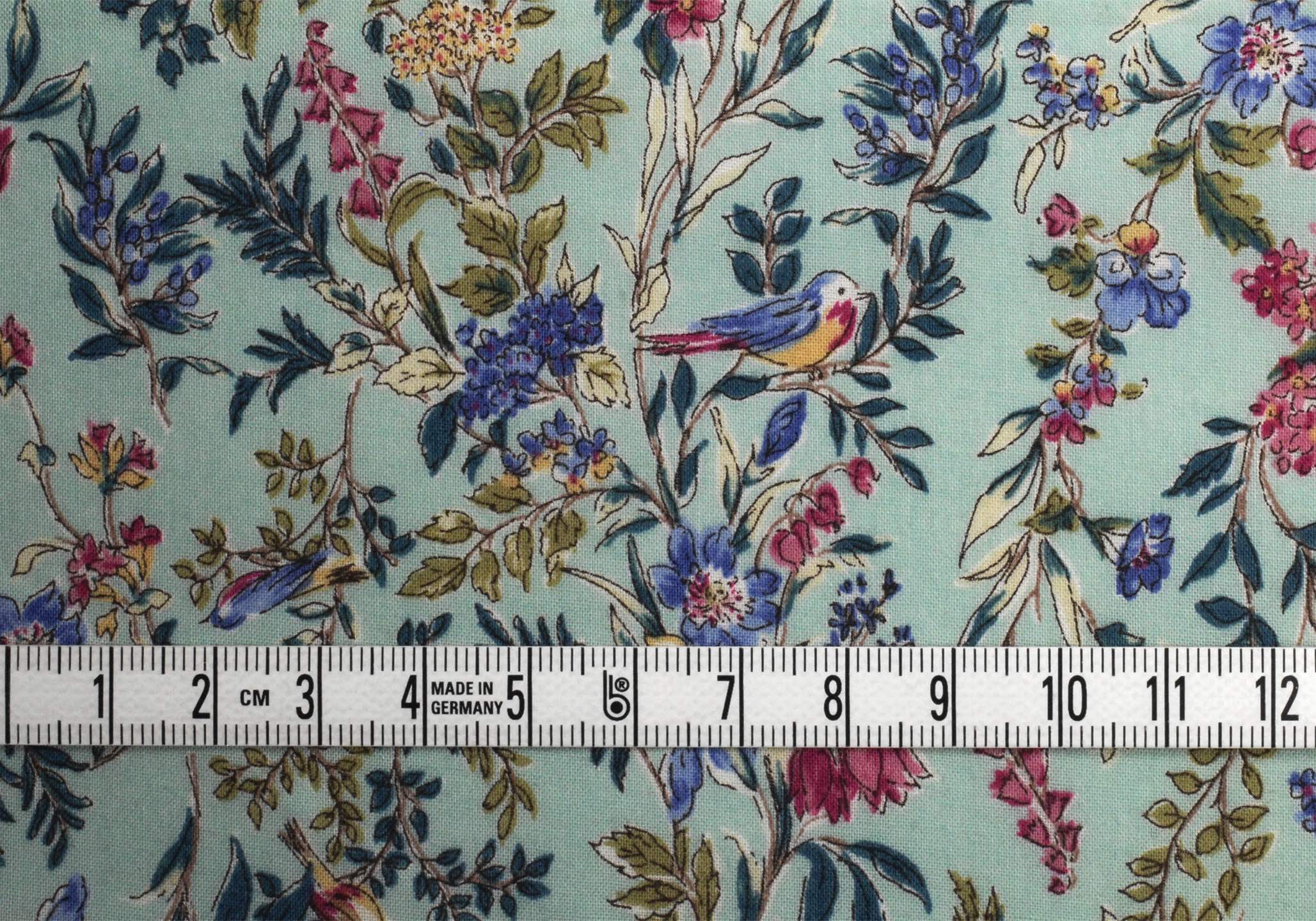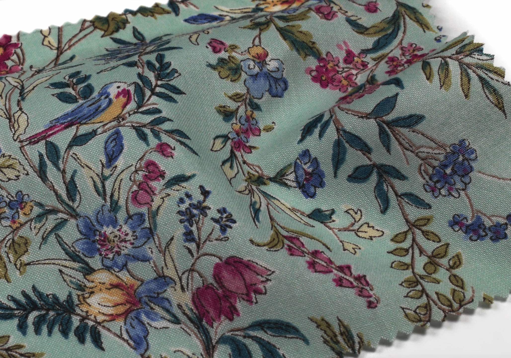 やわらかく落ち着いた印象の小鳥と花柄で展開しています。