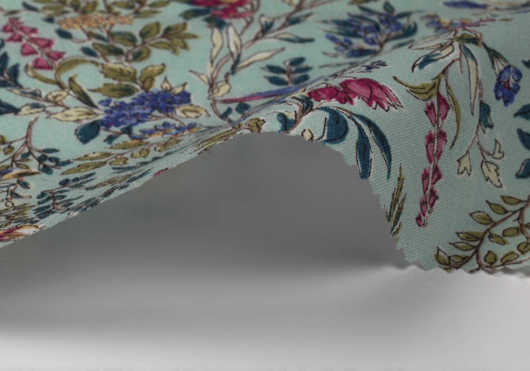 ★キメが細かく、透け感が程よく抑えられたルックスと、ソフトな風合いが特徴の薄手のローンプリント。