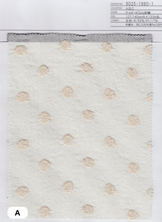 生地:ウール83/ナイロン17 刺繍糸/表:コットン100 裏:ポリエステル100