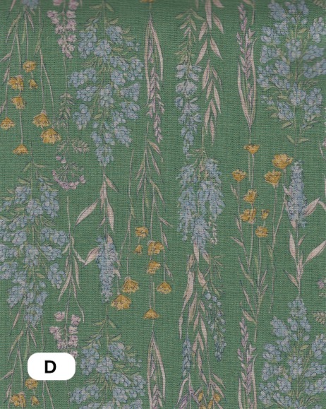 綿麻シーチング ストライプ花
