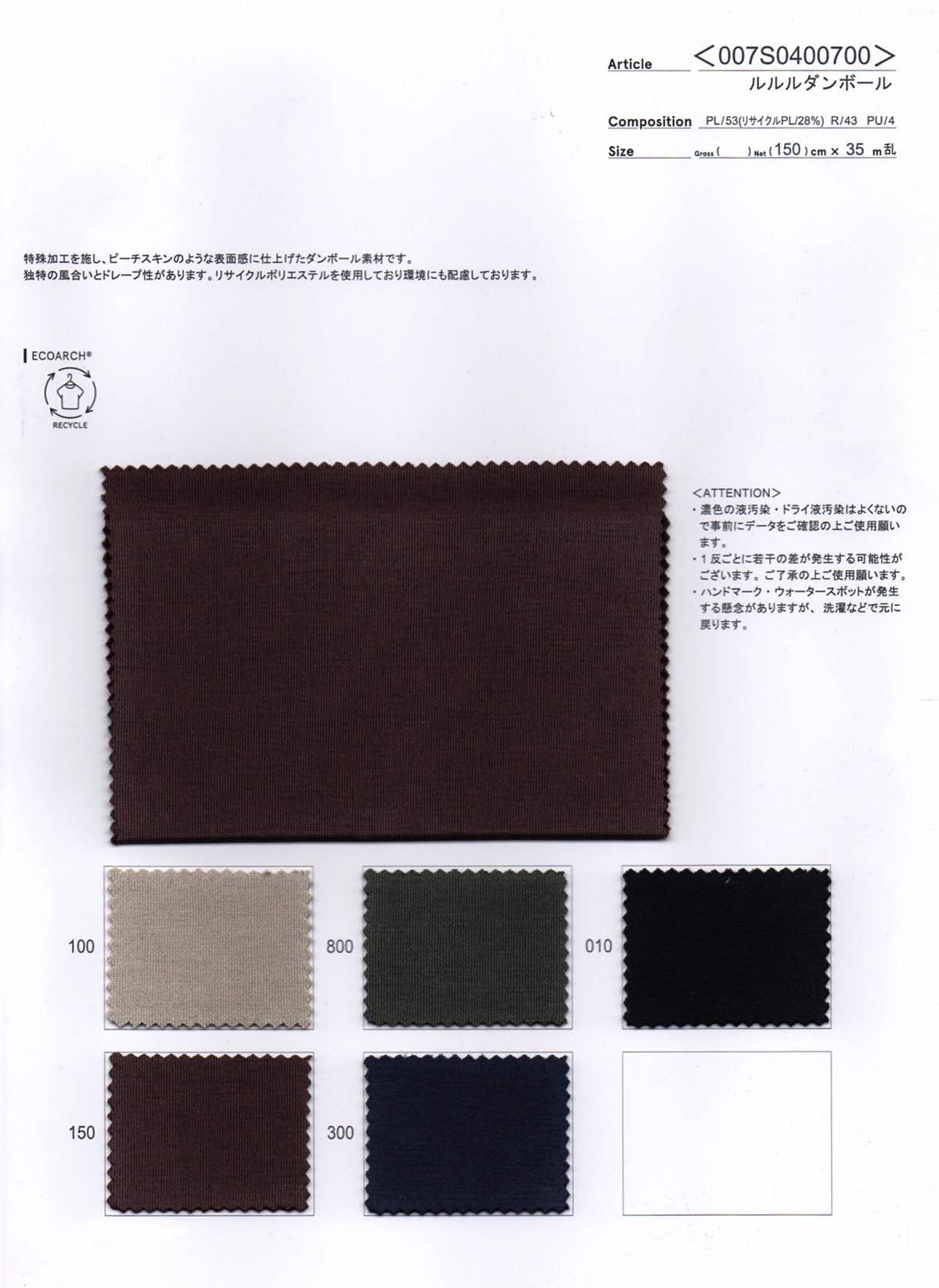ポリエステル53(リサイクルポリエステル28%)/レーヨン43/ポリウレタン4