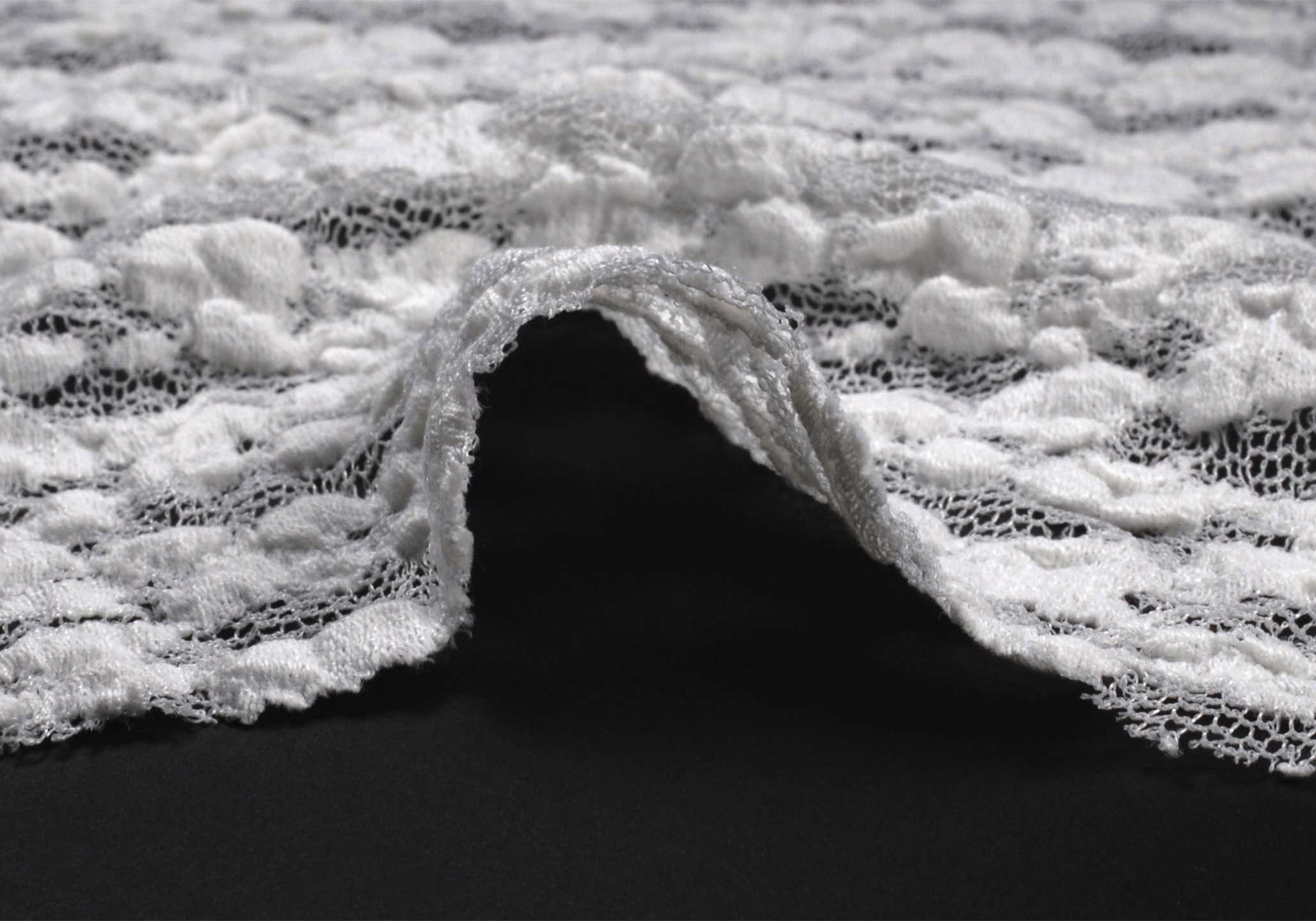 希少な旧式のチェーン機を使用し、職人の手によって丁寧に編み立てられた、技術を時間が息づくレース素材です。